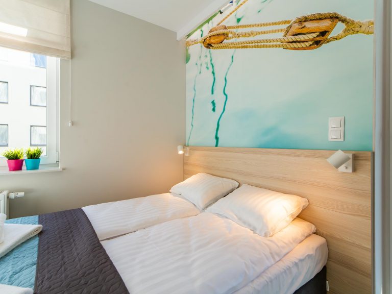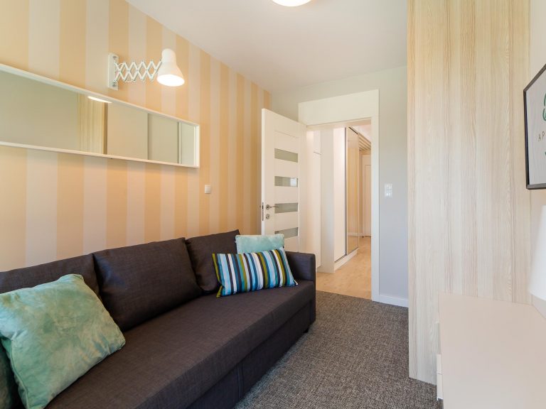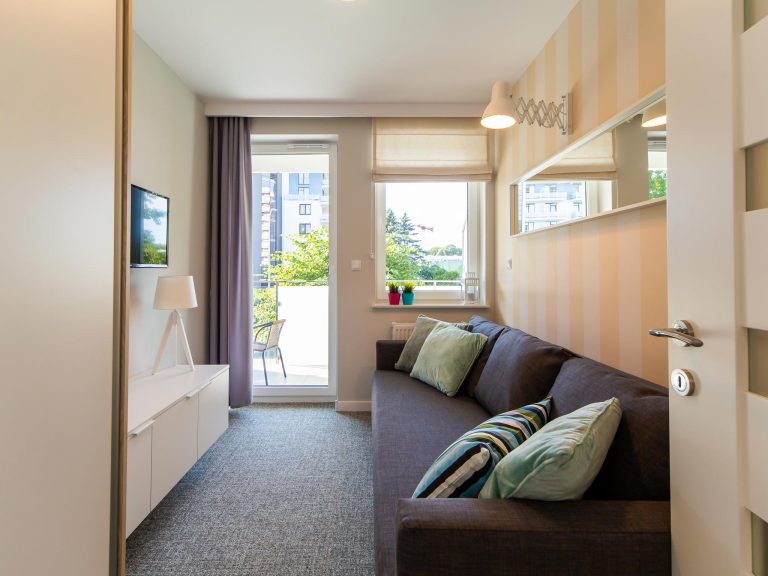 Sofa rozkładana 2 osobowa, komplet pościeli,lampki nocne, szafa, TV, dostęp do balkonu.